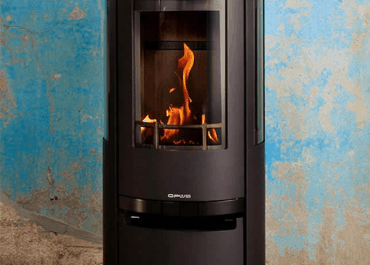 The New Opus Trio Scala gas stove is an impressive looking, contemporary, cylinder stove with glass on three sides offering great views of the flames within. The beautiful glowing ember effect makes the fire look even more realistic, with flames curling up between the ceramic logs.